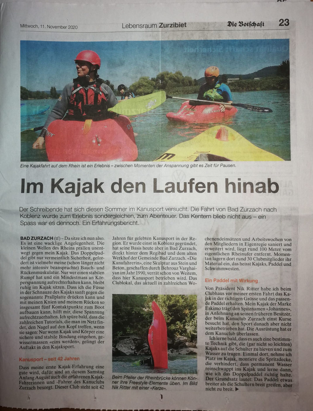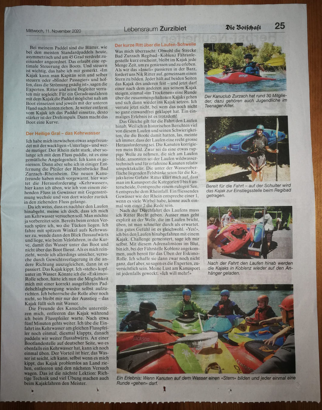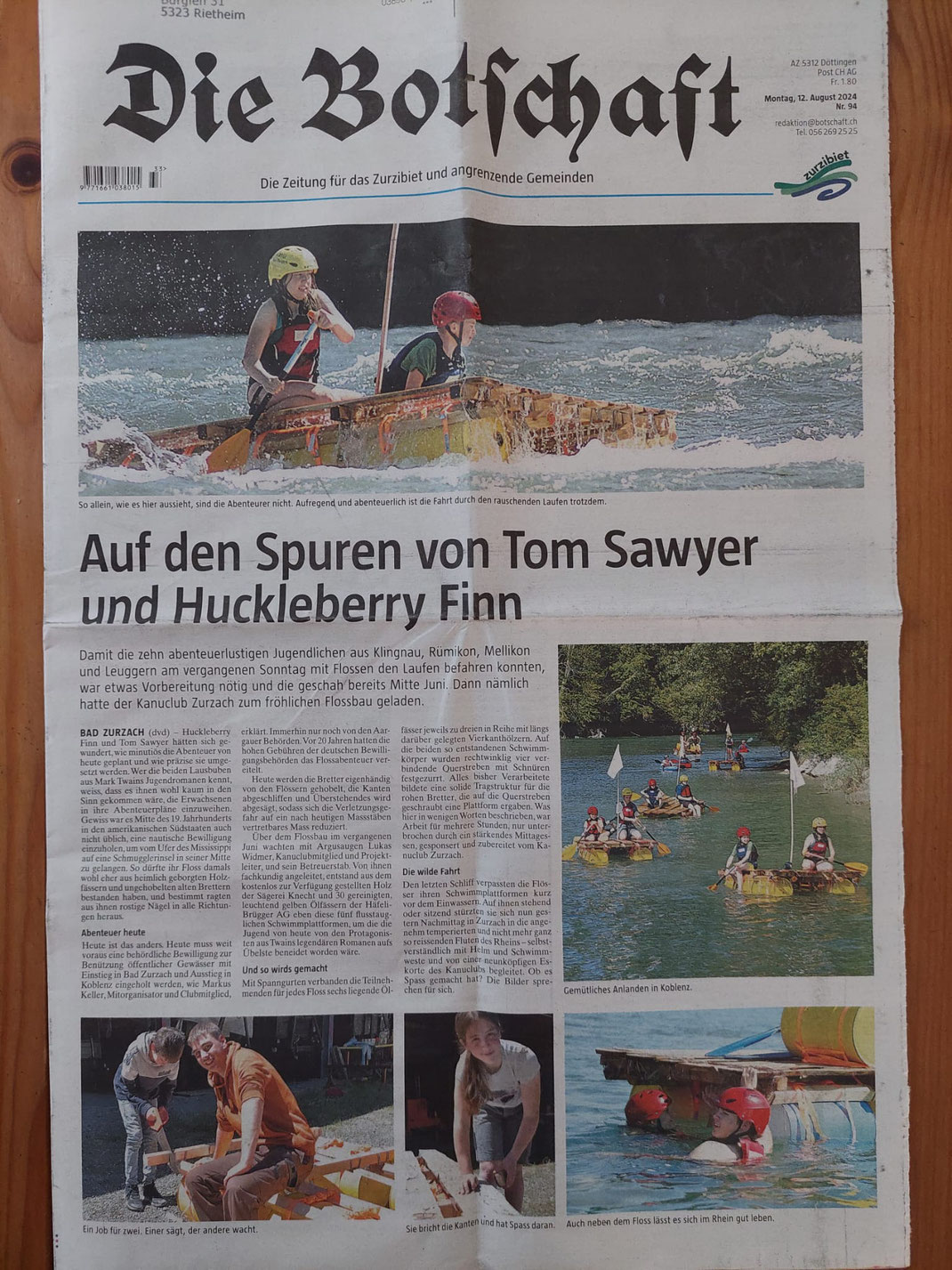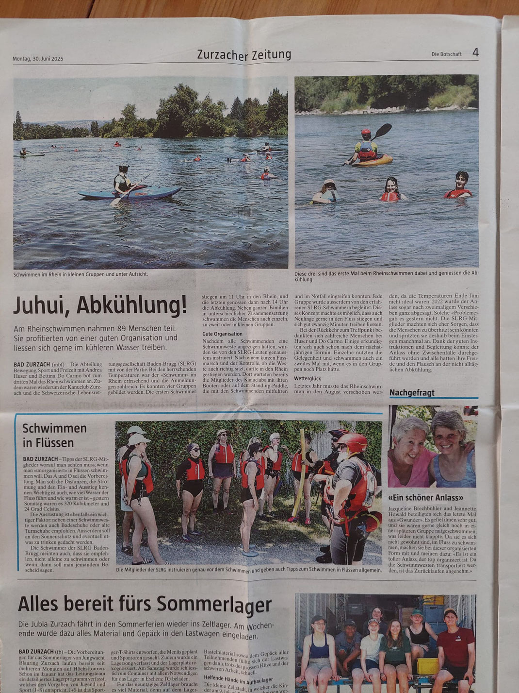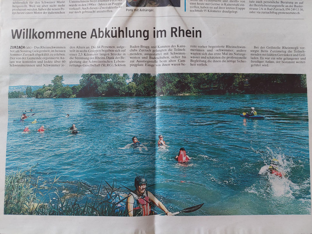 Rheinschwimmen-Artikel in der Zurzacher Zeitung vom 30. Juli 2025