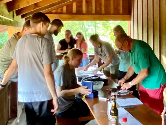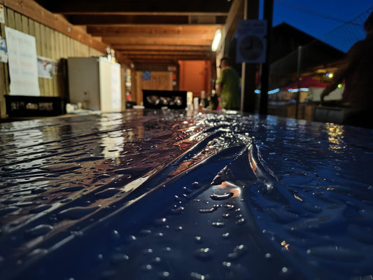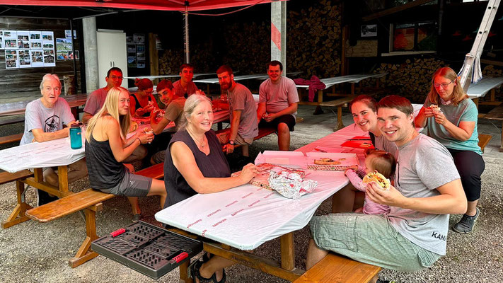 Es ist jedes Mal eine Herausforderung bis alle Backöfen laufen und auch die Lüftung ihren Dienst versieht. Diesmal wurde leider der Boiler ausgeschaltet am Mittag und wir mussten alles warme Gebrauchswasser und das Abwaschwasser selber kochen.