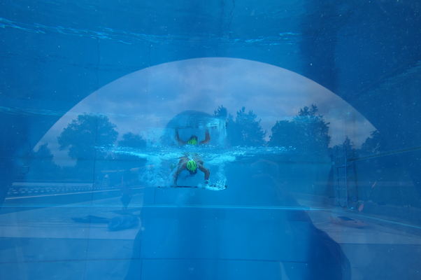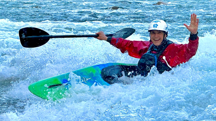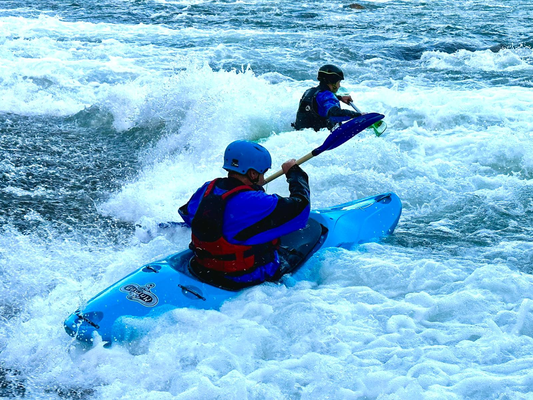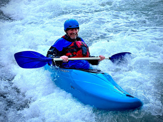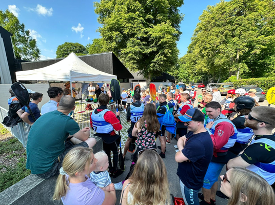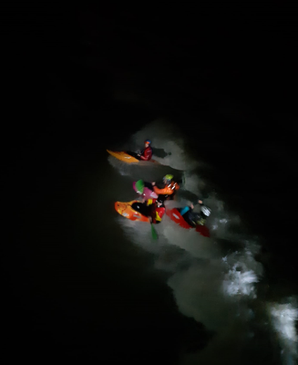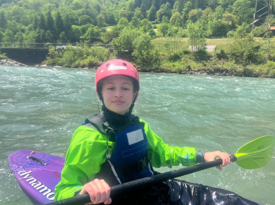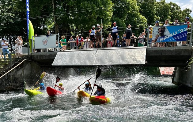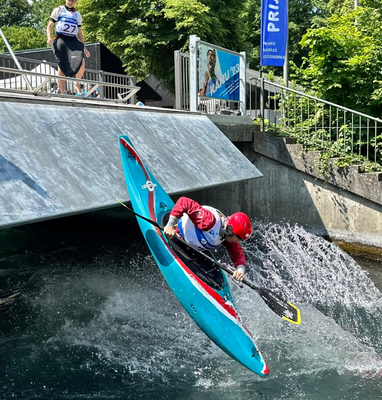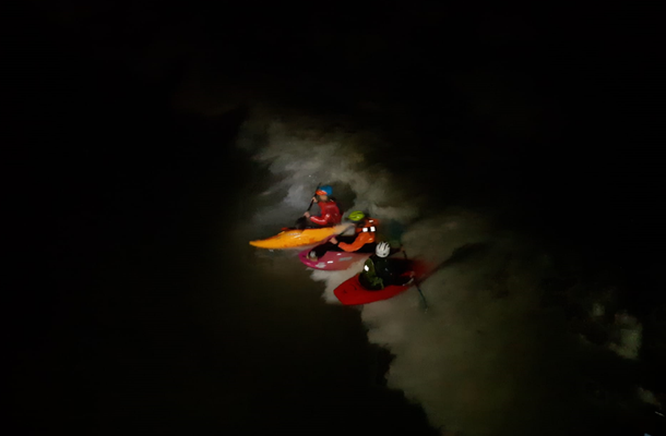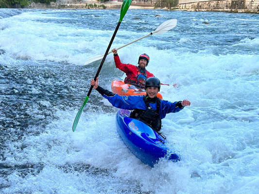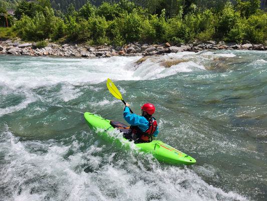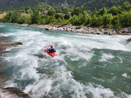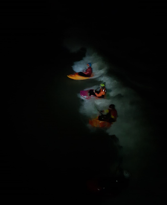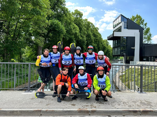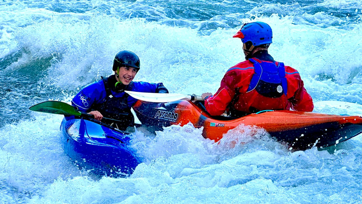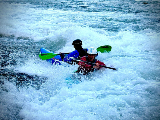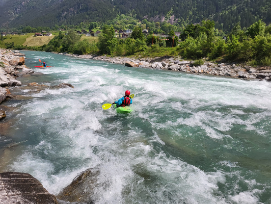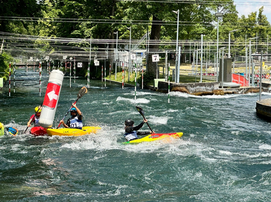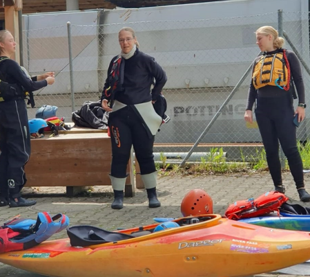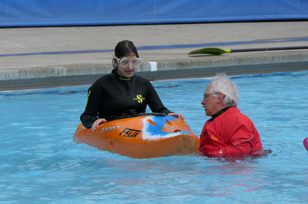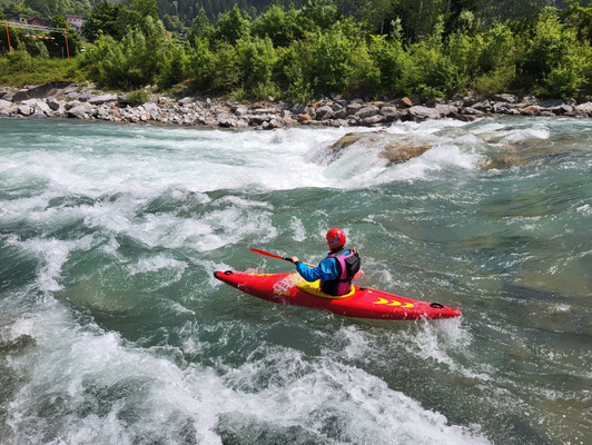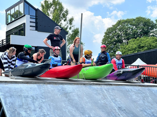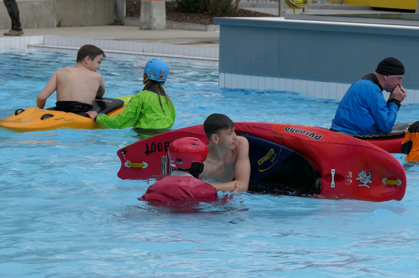unter die Welle und schauten sie uns auf einer Plattform an. Jemand blieb unten und machte Videos und Fotos. Alle andern fuhren souverän runter, nur eine Kanutin musste gerettet werden. Nach ein