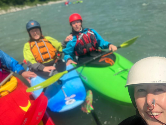 Als wir nach 2 Stunden und einer unfreiwilligen Ehrenrunde bei unserem Ausstieg ankamen, schnappten wir uns zuerst unsere Snacks und setzten uns an den Fluss. Einige liessen sich direkt neben dem