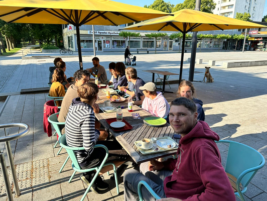 alle wieder versammelt und verzehrten unser Essen unter der Brücke. Weil wir aber noch lange zurückfahren mussten, machten wir uns schnell wieder auf den Rückweg. In einem Autobahnrestaurant