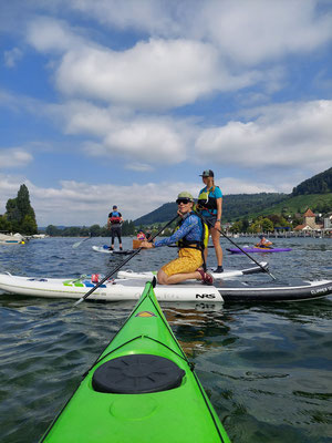 Der Rest war SUP-verliebt unterwegs, inklusive Jasmin und Steffen, die zwar zunächst im Kanadier starteten, nach der Mittagspause aber kurzzeitig die Seiten wechselten.