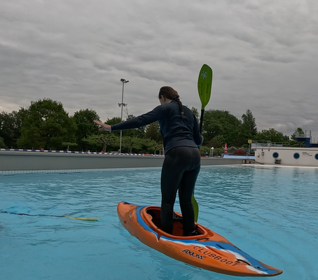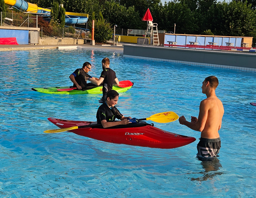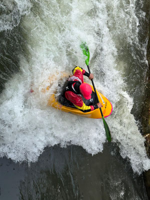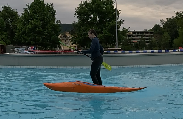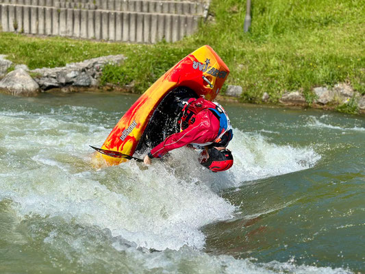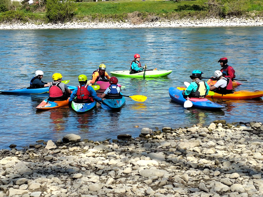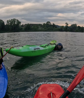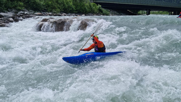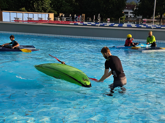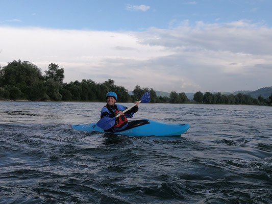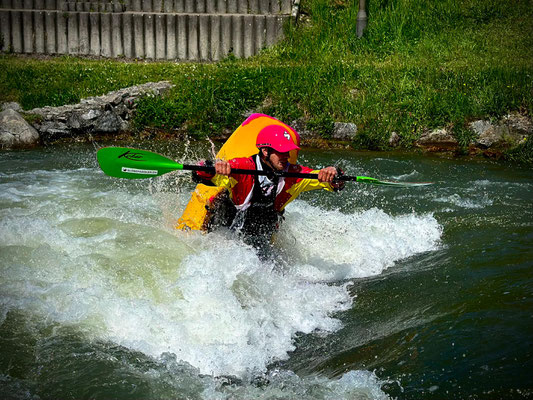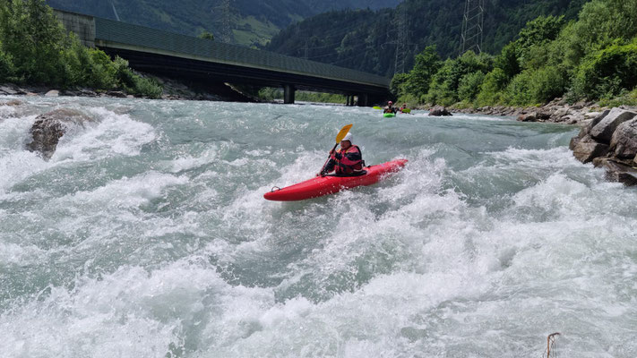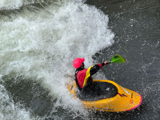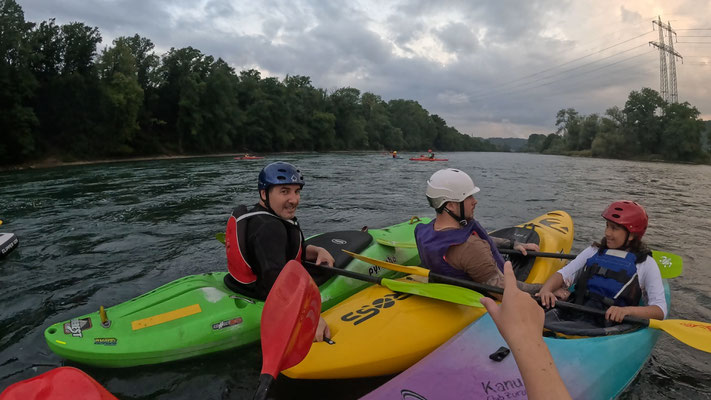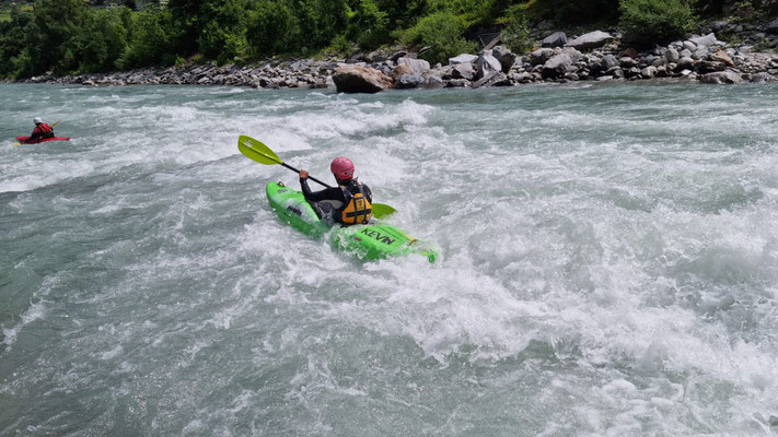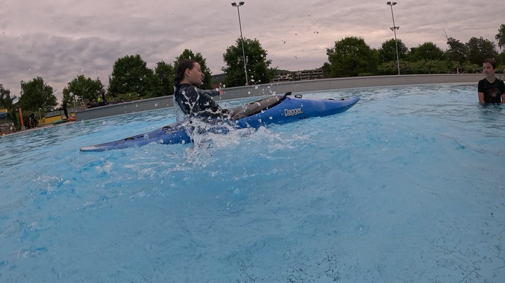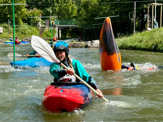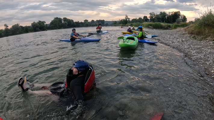 Die nächsten zwei bis drei Stunden waren weniger anspruchsvoll und gaben mir Gelegenheit, etwas mehr auf meine Technik zu achten – besonders auf das Kehrwasserfahren. Mit Hilfe von Nadine, Ritsch und Markus konnte ich ein paar nützliche Tipps mitnehmen und mehrfach üben.