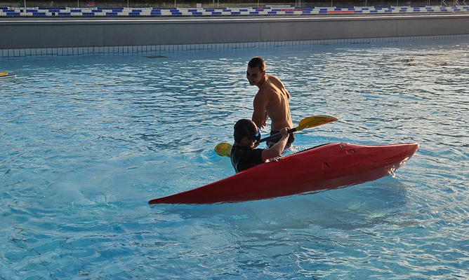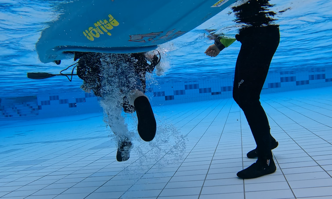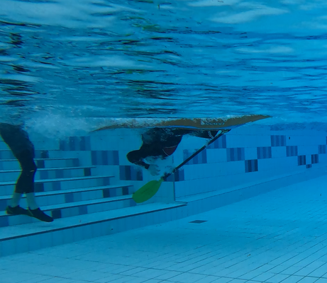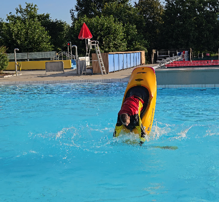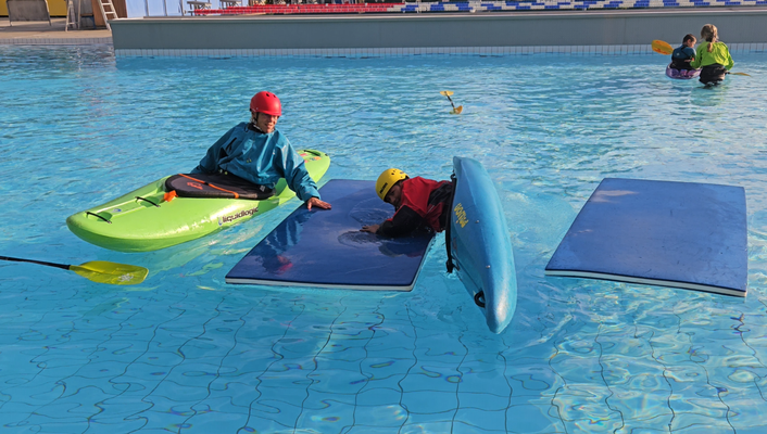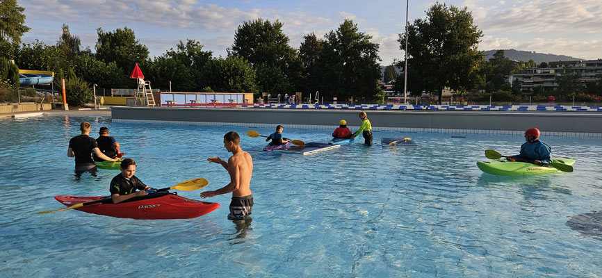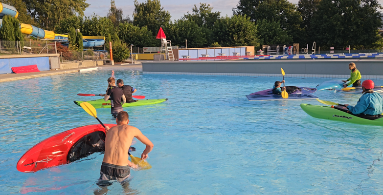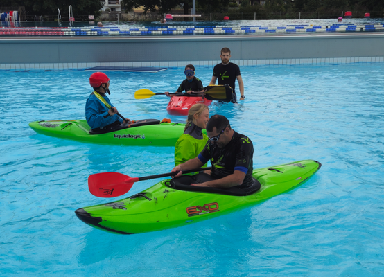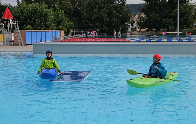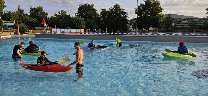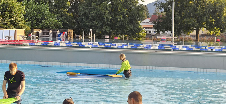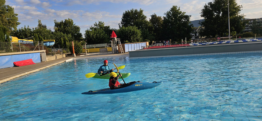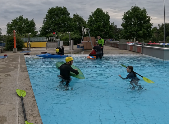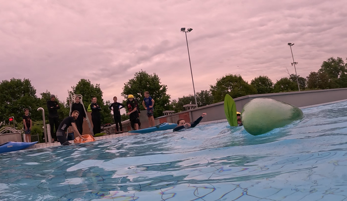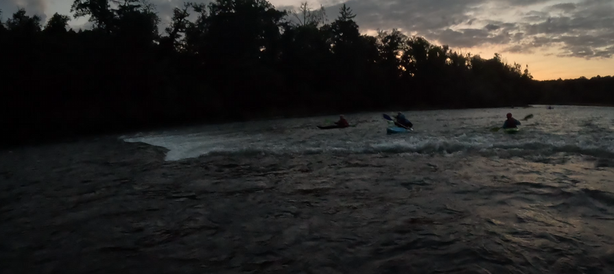 Die nächsten zwei bis drei Stunden waren weniger anspruchsvoll und gaben mir Gelegenheit, etwas mehr auf meine Technik zu achten – besonders auf das Kehrwasserfahren. Mit Hilfe von Nadine, Ritsch und Markus konnte ich ein paar nützliche Tipps mitnehmen und mehrfach üben.