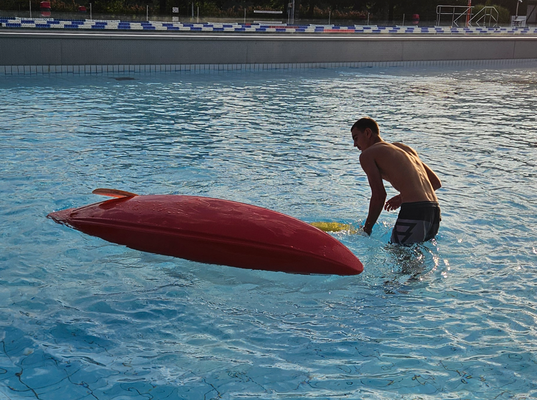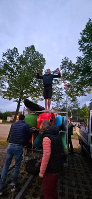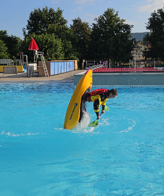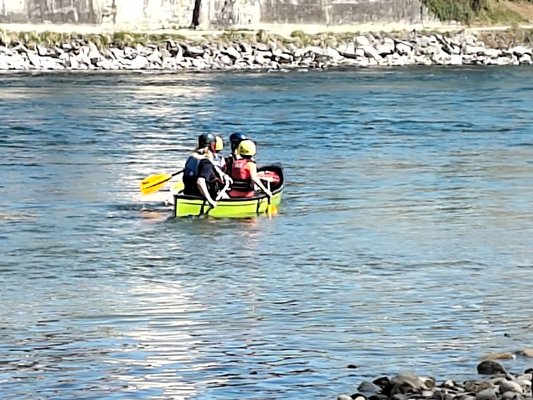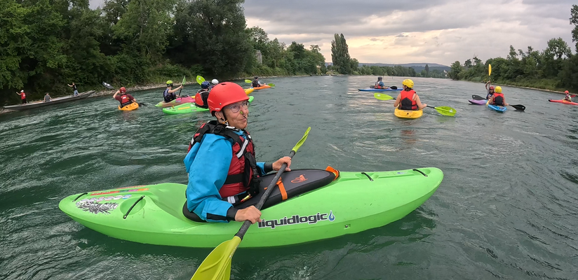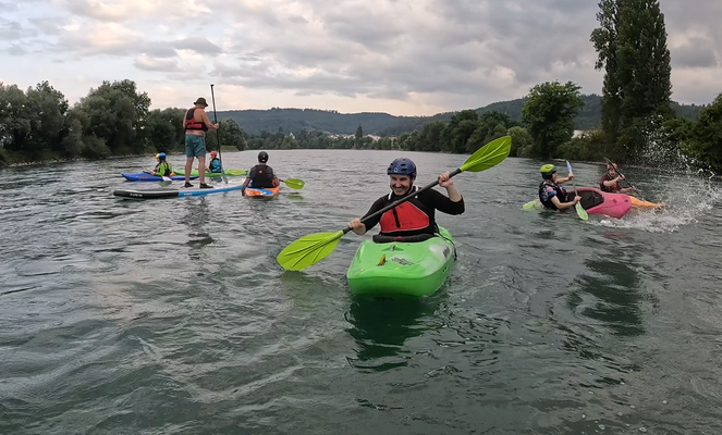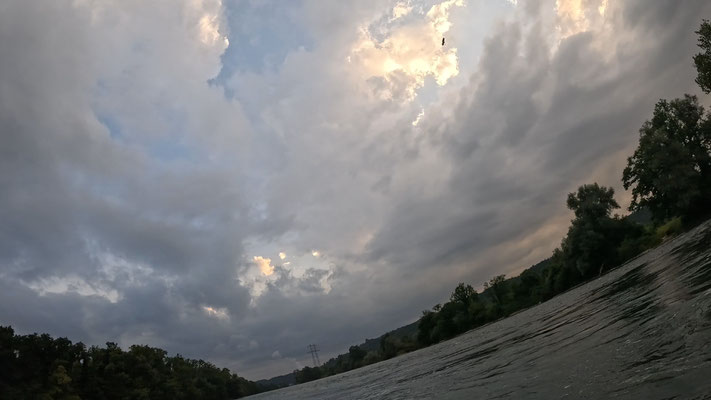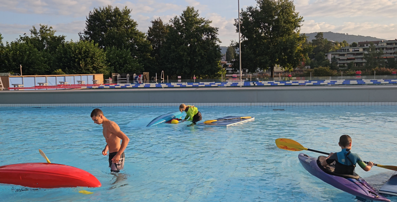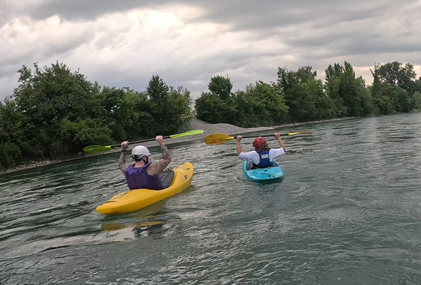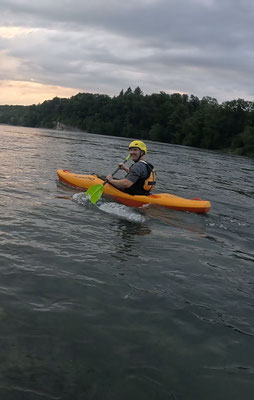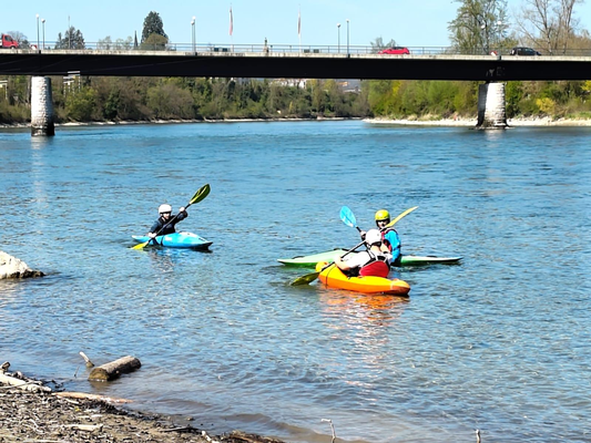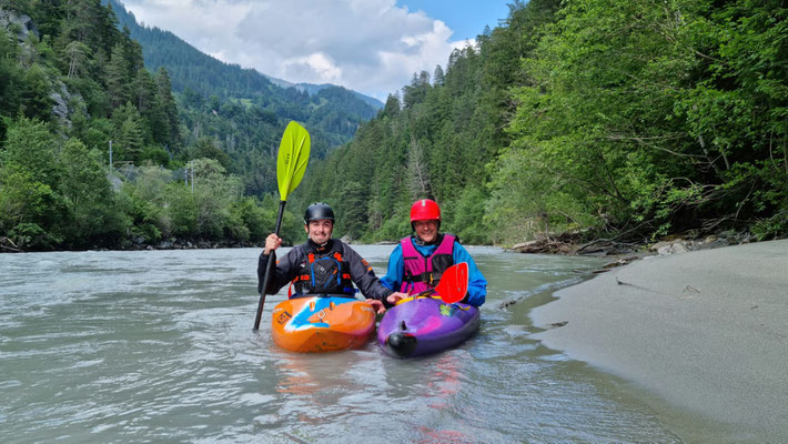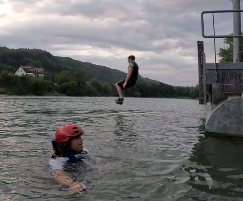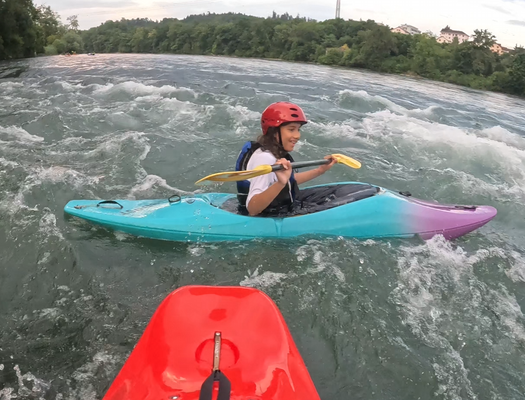 Sonntagmorgen: Der Fluss hatte sich beruhigt – und zwar auf immer noch sportliche, aber charmante 80 m³/s. Wir paddelten die die Strecke von Versam bis Reichenau, und das gleich zweimal hintereinander, um die Technik zu verfeinern. Beim zweiten Mal stieß Fiona mit Paddlern aus Brugg dazu. Parallel dazu befuhren David und Jonas mit ein paar Bruggern den Glenner. Der Abend klang erneut auf dem Campingplatz aus – diesmal mit vielleicht etwas mehr Muskelkater, aber auch mit noch breiterem Grinsen.