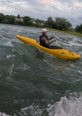 Nachdem ich kurz die Einladung zur Kajaktour nach Amsteg am Sonntag angeschaut hatte, begannen sich erste Zweifel zu regen – insbesondere, weil ich noch nie eine WW2–3-Strecke im Kajak gefahren bin. Nach einem schnellen und beruhigenden Austausch mit David habe ich meine Teilnahme bestätigt und das Gedankenkarussell fürs Erste gestoppt – zumindest bis am nächsten Morgen.