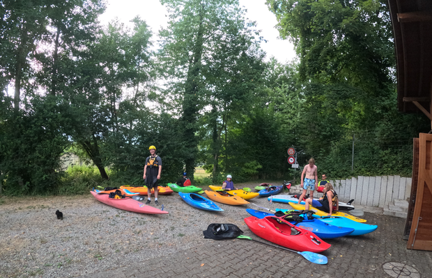 Punkt 8 Uhr haben wir uns beim Bootshaus getroffen – insgesamt acht Personen, alle gut gelaunt, ausser die Wettergötter, die sich noch nicht entscheiden konnten, was sie mit uns vorhatten. Nach einer gut überlegten Beratung mit David wurde für mich das grosse grüne Creek-Boot ausgewählt – eine Wahl, die sich den ganzen Tag über bemerkbar machen sollte.