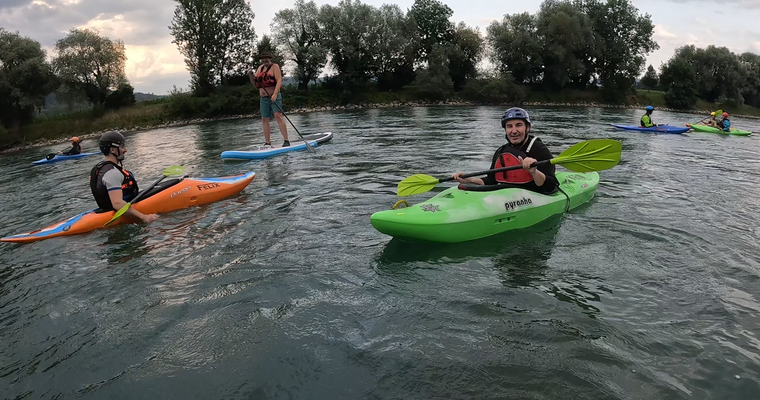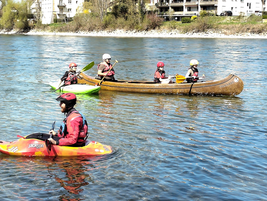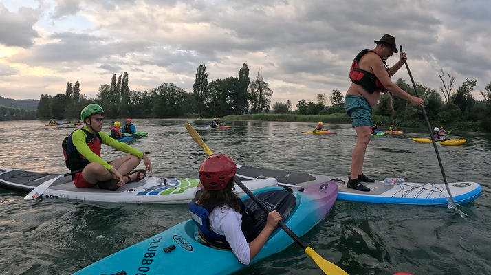 Man nehme: 13 Kanuten, eine bunte Mischung aus SUPs, Kajaks und Kanadier, dazu Sonne satt und den Rhein bei besten 23,7 °C Wassertemperatur – und schon hat man das Rezept für einen dieser Tage,